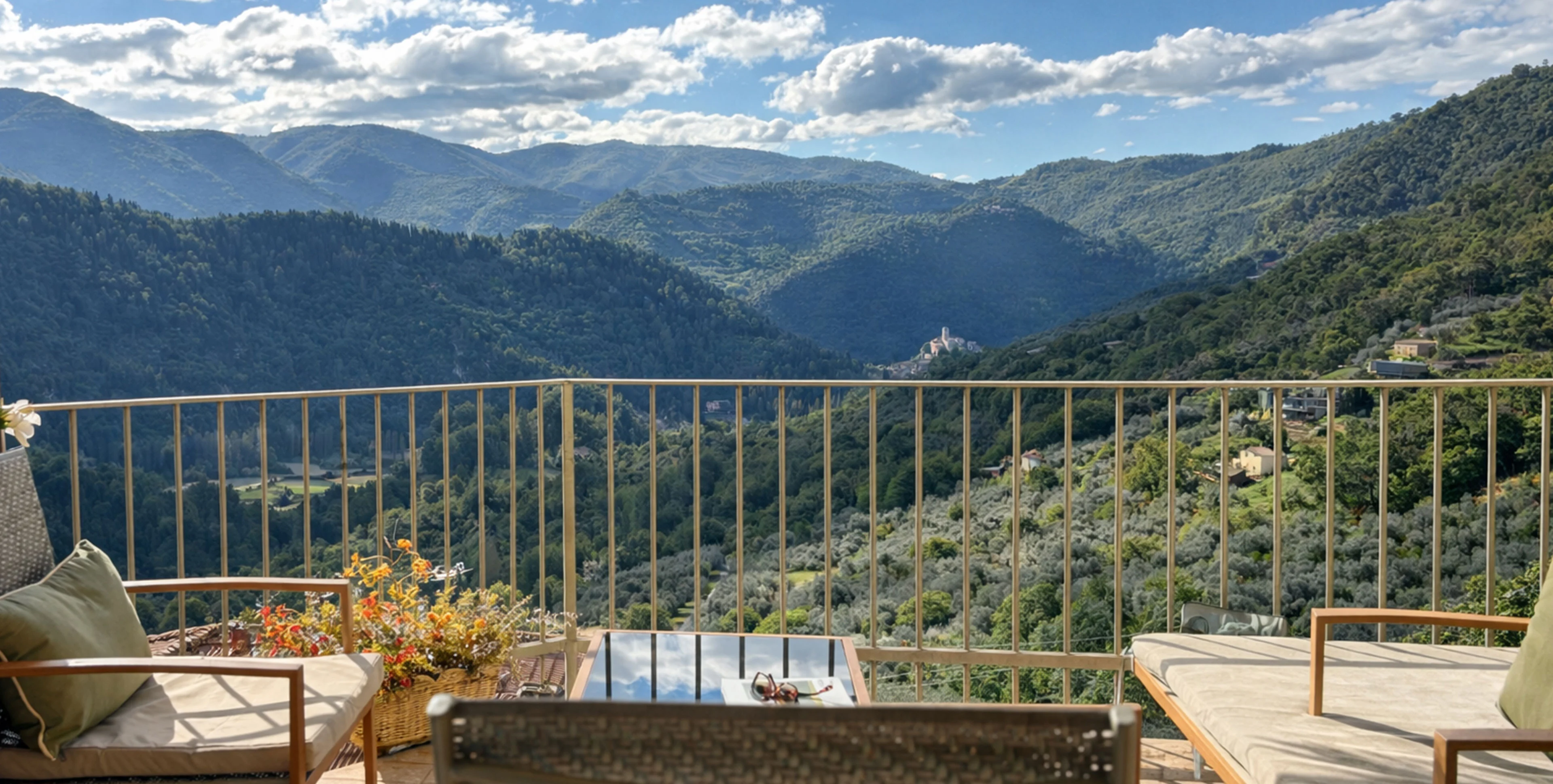 Un terrazzo panoramico con vista sulla valle, arricchito da piante vere e un comodo divanetto, sarà lo sfondo ideale per i tuoi aperitivi e le colazioni all’aria aperta.